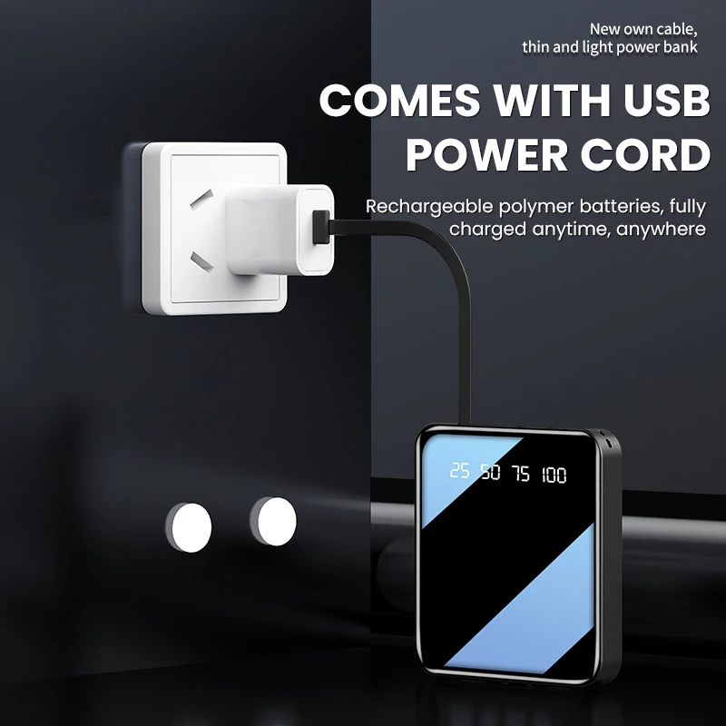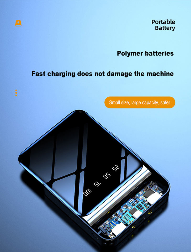 Battery type: The power bank is a portable battery, which can be used as a mini power bank for iphone, xiaomi and other devices.