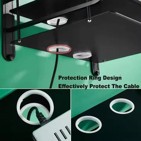Practical wall shelf:聽the electronic stand can be used with the TV, such as routers, projectors, DVD players, Blu-ray players, game consoles, satellite TV box, cable TV box, sky box, etc. It can also be used to place some potted plants, decoration, alarm clock and other items. Practical shelf, saves space on the floor. Cable hole design with protective ring for easy cable arrangement and organization.