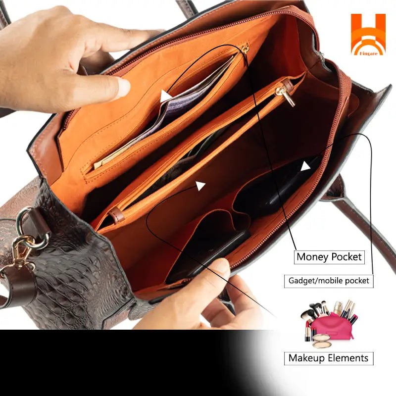 Hingare Crocodile Pattern Genuine Leather Luxury Women Handbags Bag.