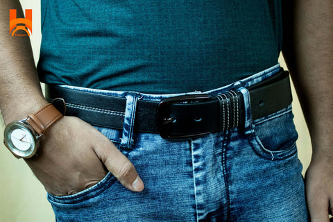 Hingare Men's Double Stitching Leather Belt 100% Genuine Leather Belt (Enclosed in Gift Box)