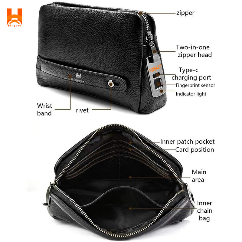 Hingare Smart Anti-Theft Fingerprint Lock Handbags Genuine Leather Large Capacity bag