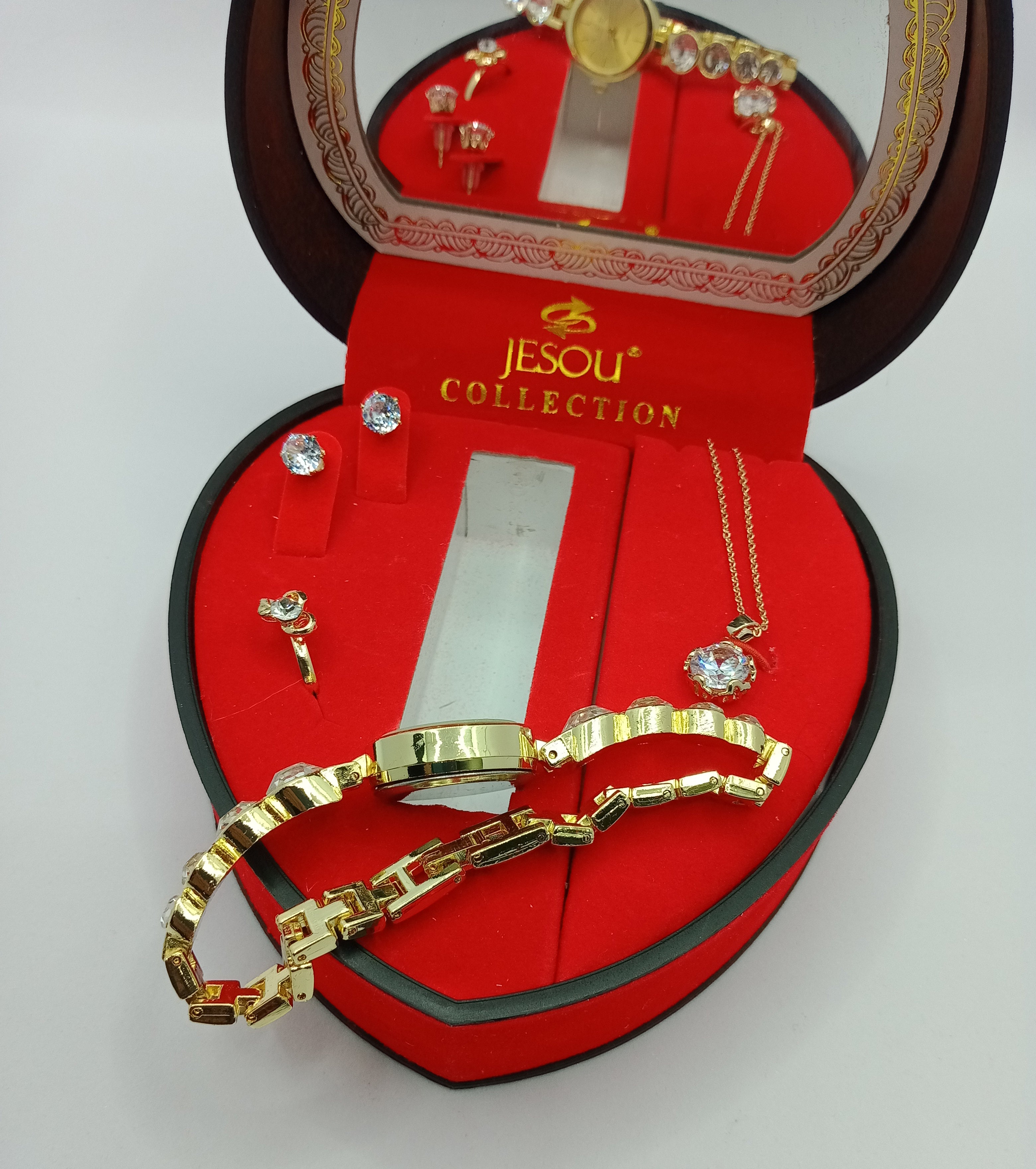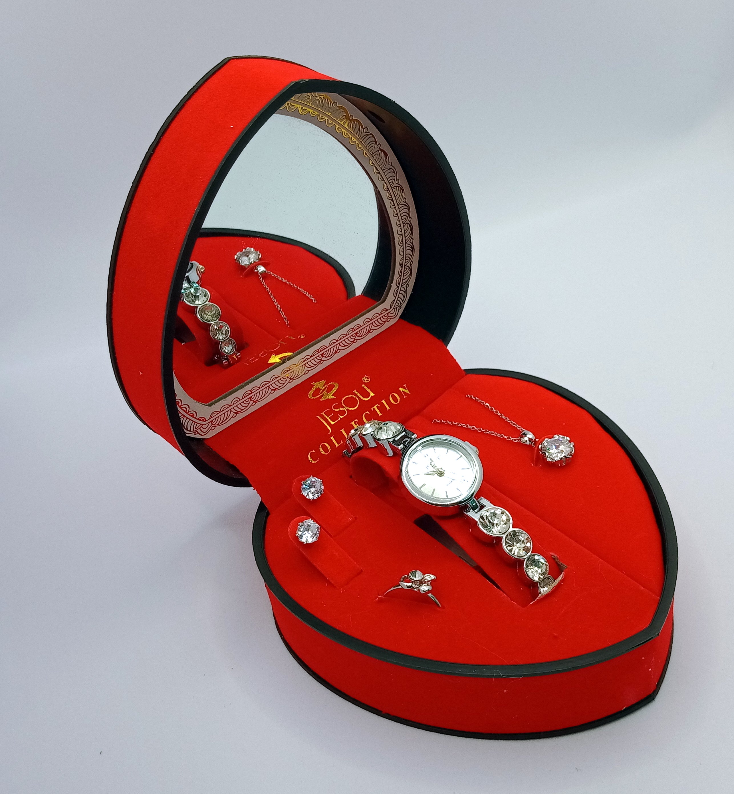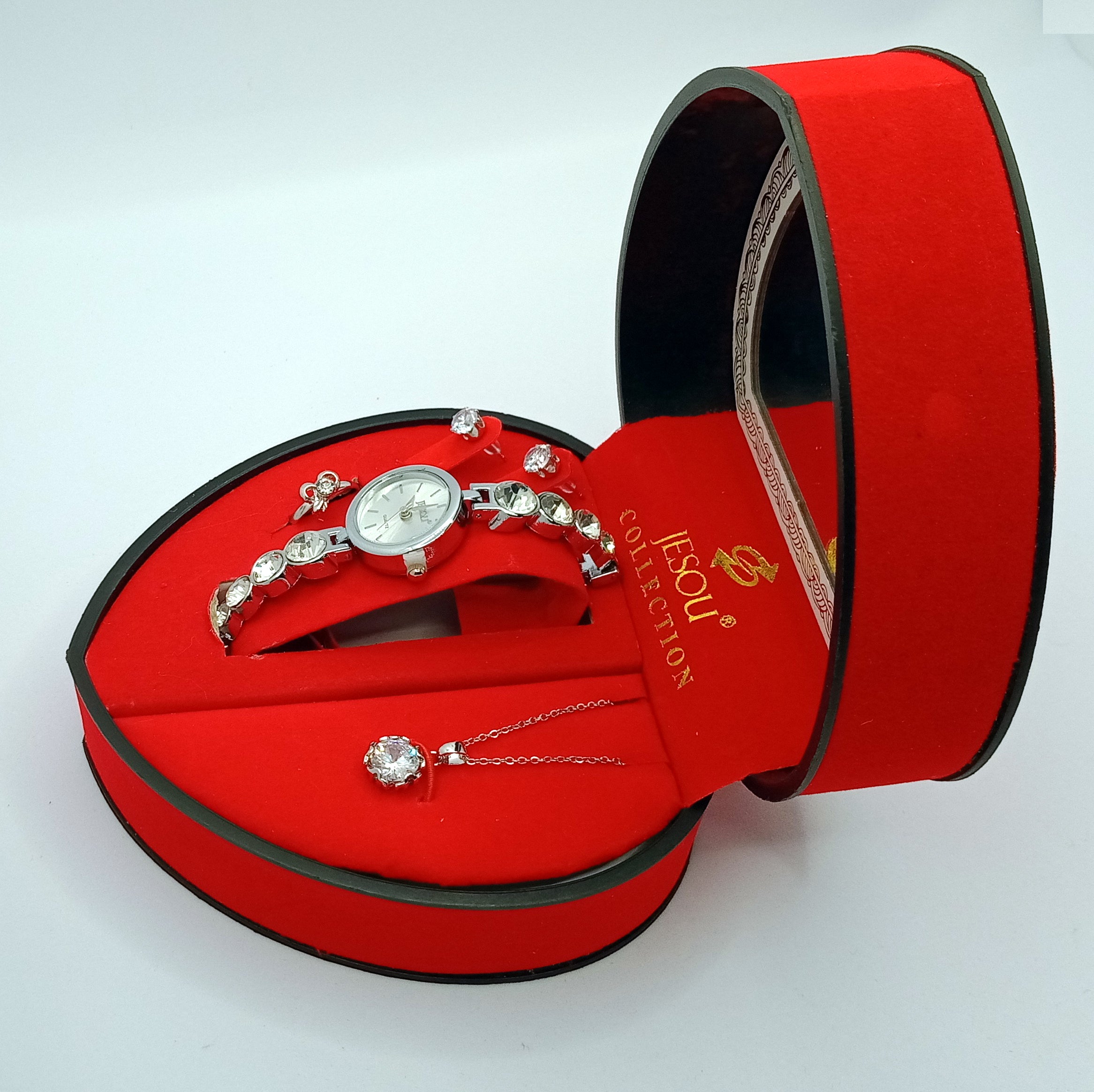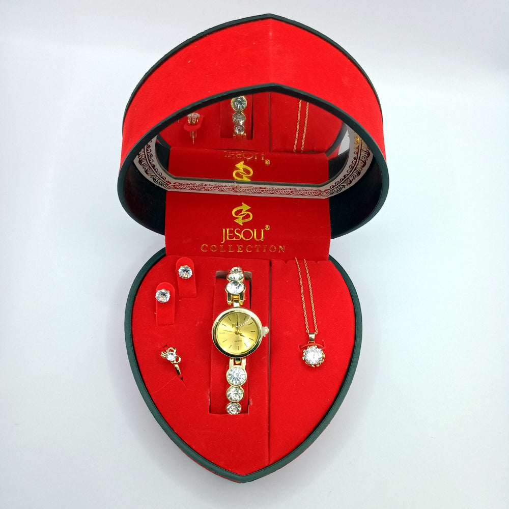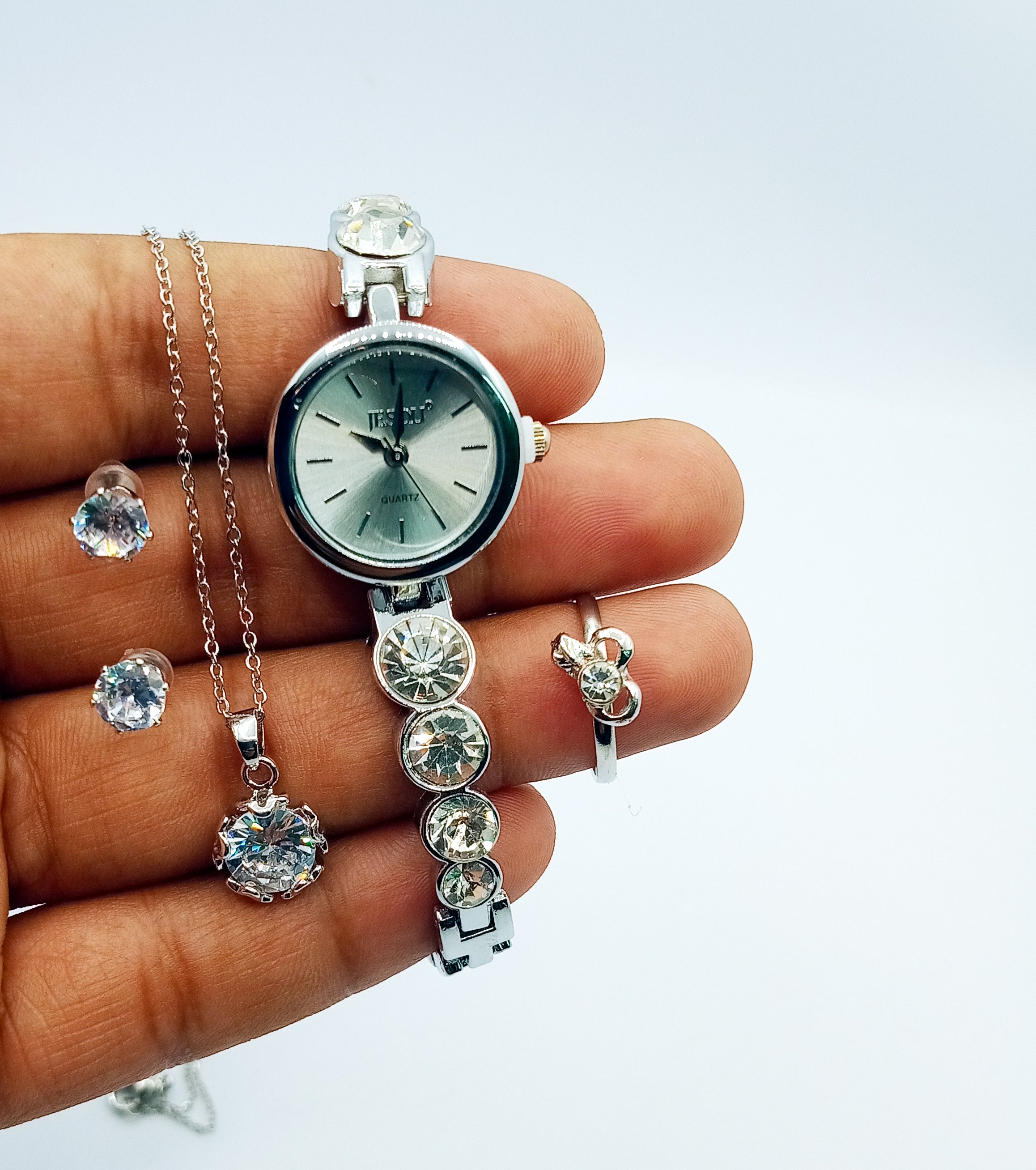 Women Bracelet Watch Set Crystal Design Necklace Earrings ring Female Jewelry Set Gift Box