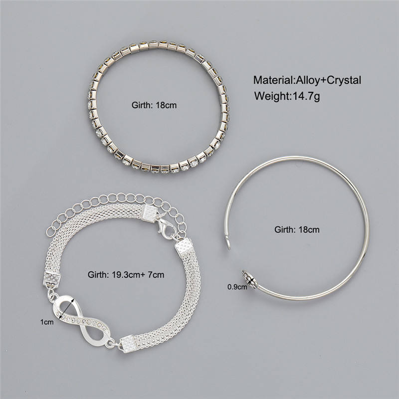 Women Metal Heart Cross Charm Bracelet Set 3pcs Bangle Bracelet Set Gift